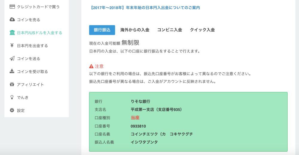 クリックすると出てくる口座に投資したい額を振り込んでください。