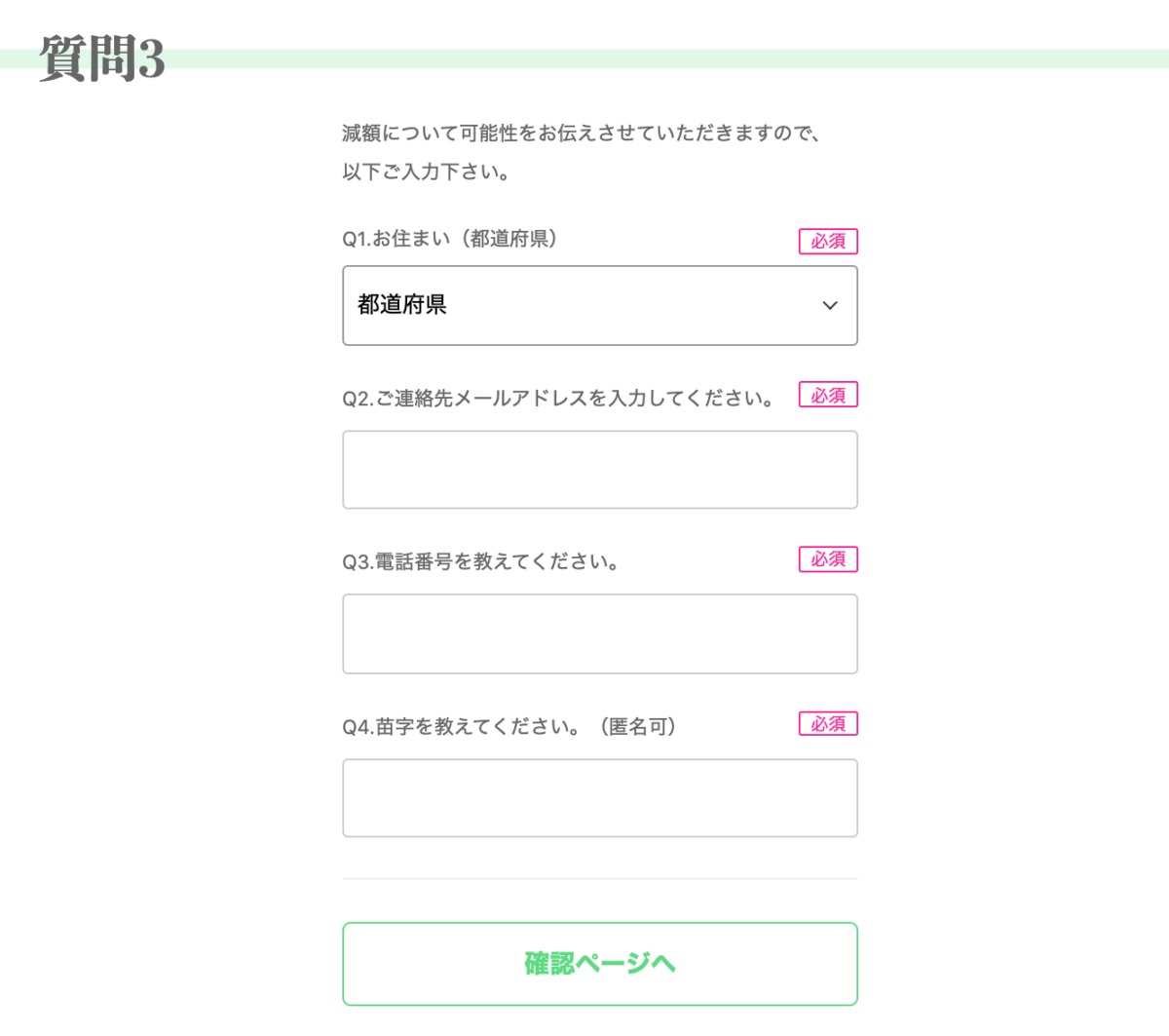 滞納歴、完済経験の有無、家族への関わり方を選択しましょう。